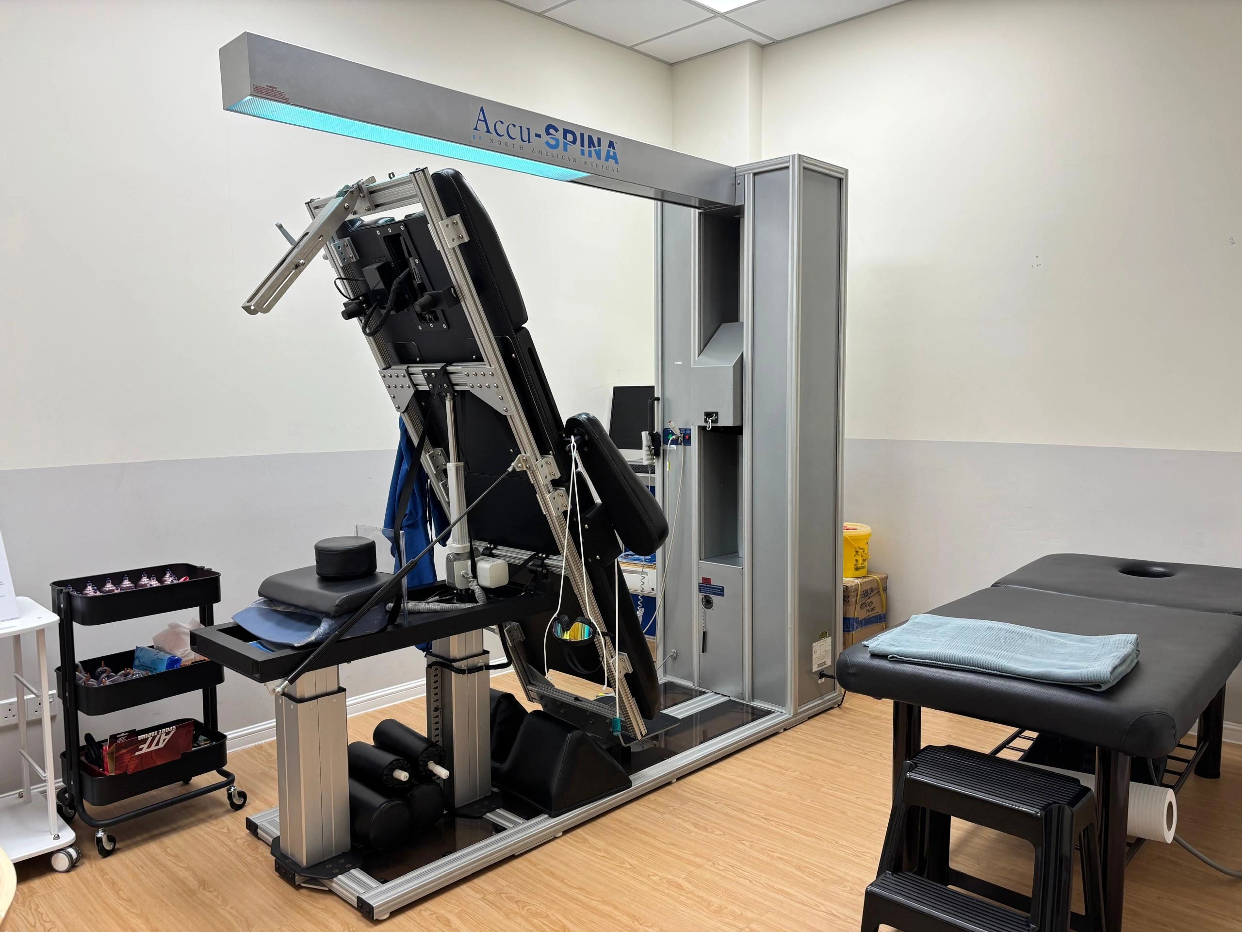 AccuSpina is a spinal decompression therapy device used to treat back pain, herniated discs, sciatica, and nerve compression. This helps promote healing, reduce pain, and improve mobility without surgery.